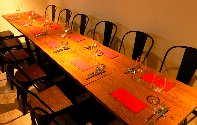 スペインワインと料理のマリアージュ 店内には、スペイン産ボトルワインを常時20本以上、取り揃えております。赤・白・スパークリングワインは、国内でなかなか味わえない希少な銘柄も多数あり、いずれも料理との相性は抜群。素材の味を活かしたお肉料理や、鮮度抜群な素材を使った海鮮料理とのマリアージュをお楽しみください。
